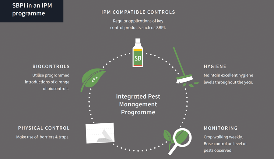For effective control, thorough and regular applications of SBPI must be applied to the whole plant and to the point of run-off on leaves, ensuring both the upper and lower leaf surfaces receive treatment.
