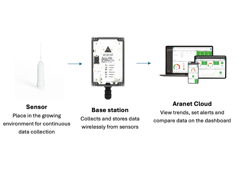 Aranet is a wireless monitoring system designed to give growers real-time insights into their crops and their growing environment. With a wide range of sensors and long-range wireless connectivity, Aranet helps you to make more informed decisions, increasing efficiency and yield whilst reducing costs.