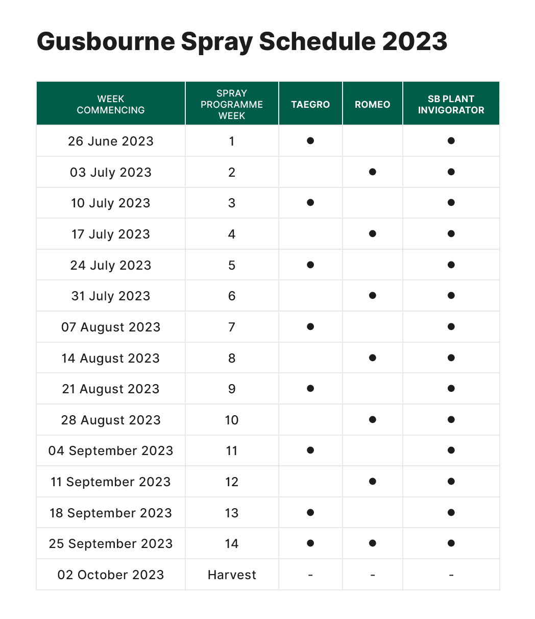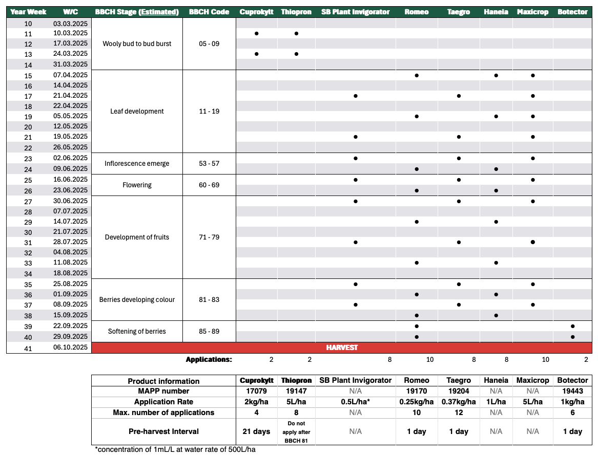 • Programme can be extended should harvest dates change – please be conscious of harvest intervals and application limits on production labels
