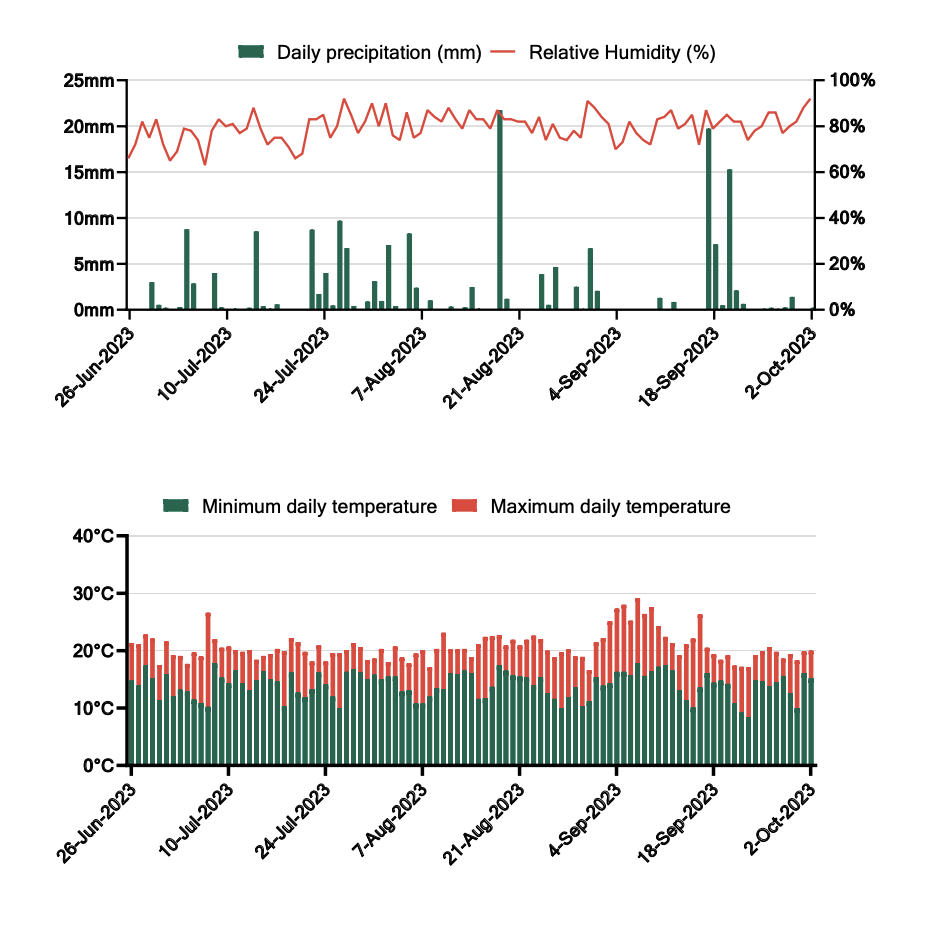 The growing season started with high spring temperatures, but this gave way to an exceptionally mild and wet July and August before a hot and dry September and start of October.